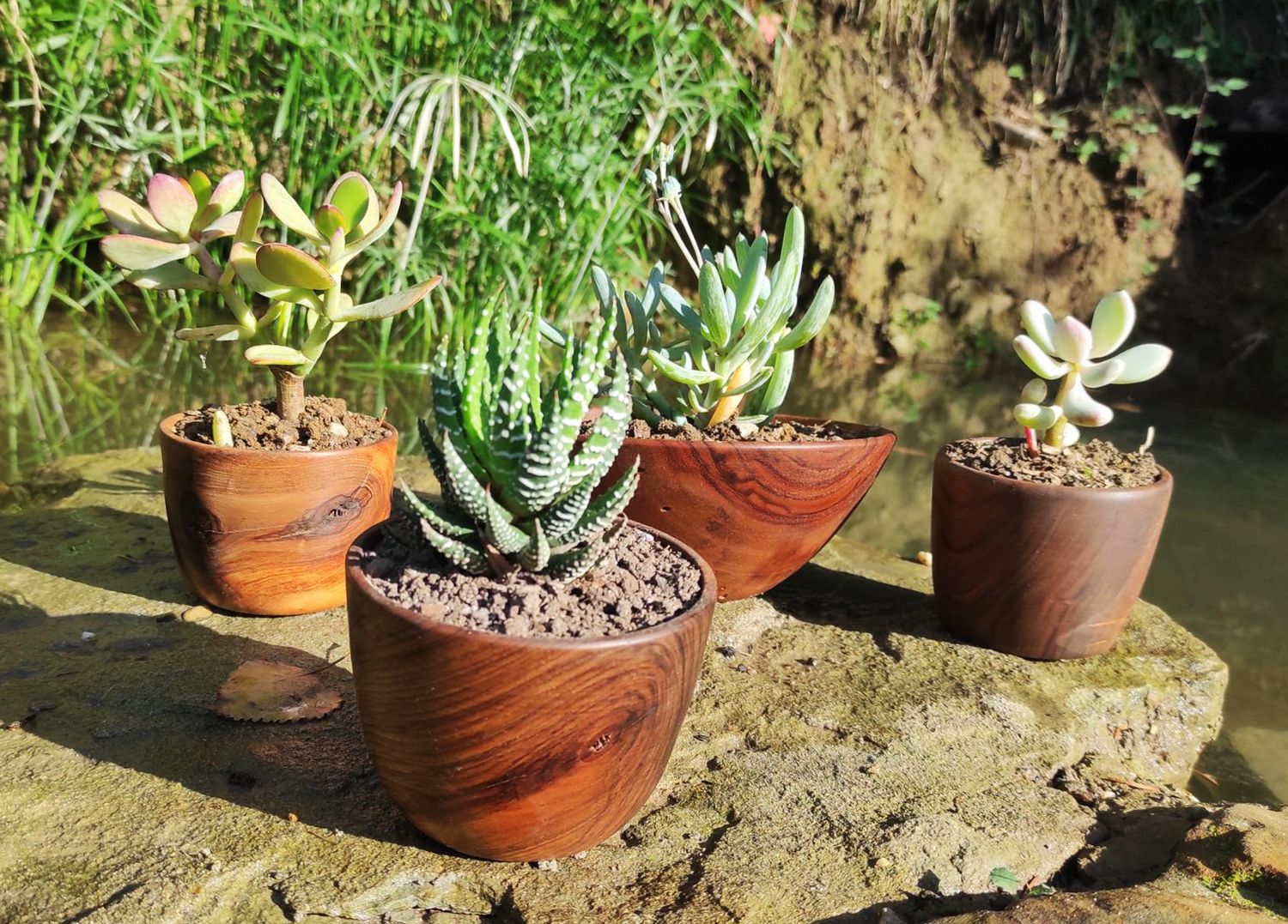 Cache pot en bois de noyer tourné artisanalement dans mon atelier de...
